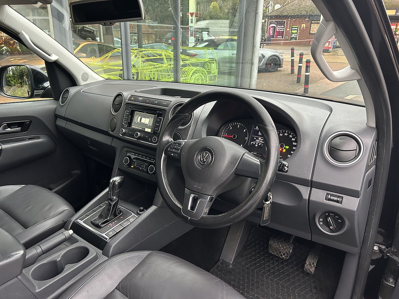 We are proud to offer this VW Amarok Highline finished in Gloss Black with Anthracite Vienna leather upholstery. This truck has had 3 previous keepers and been well maintained throughout including a recent full service including timing belt replacement. It has a great specification including: Heated Front Seats, Satellite Navigation, Full Leather Interior, Rear Truck Bed Cover in Body Colour and 18 Inch Alloy Wheels to name a few (please read full specification below). This truck is a part exchange to clear, its a good solid example but please expect a few cosmetic imperfections to the exterior and interior, but overall nice truck. If you have any further questions, or would like to arrange a viewing on this brilliant example then please call a member of our sales team on 01628 825110. At Knowl Hill Performance & Luxury your experience with us is key, we offer full main dealer facilities from service, MOT and warranties to detailing, tyre changes and everything in-between. All our cars come fully detailed, and clear HPI certificate